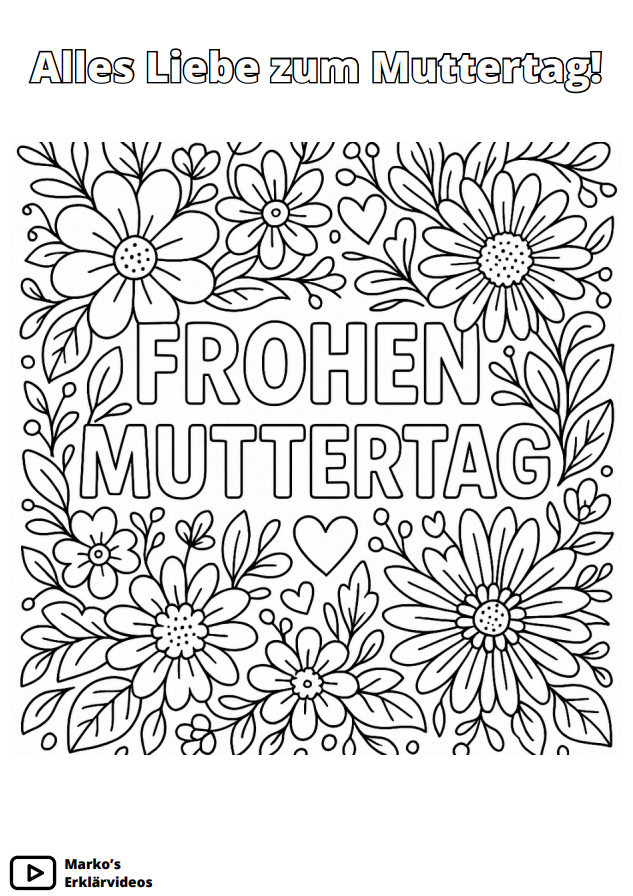Als zusätzliches Material gibt es dieses kostenloses Ausmalbild zum Muttertag, das Kinder individuell gestalten können – als kleine Überraschung oder Ergänzung zu einem selbstgemachten Geschenk.